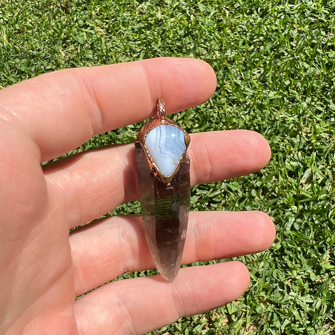 Smoky Quartz & Blue Lace Agate Pendant: Clarity & Peaceful Communication
